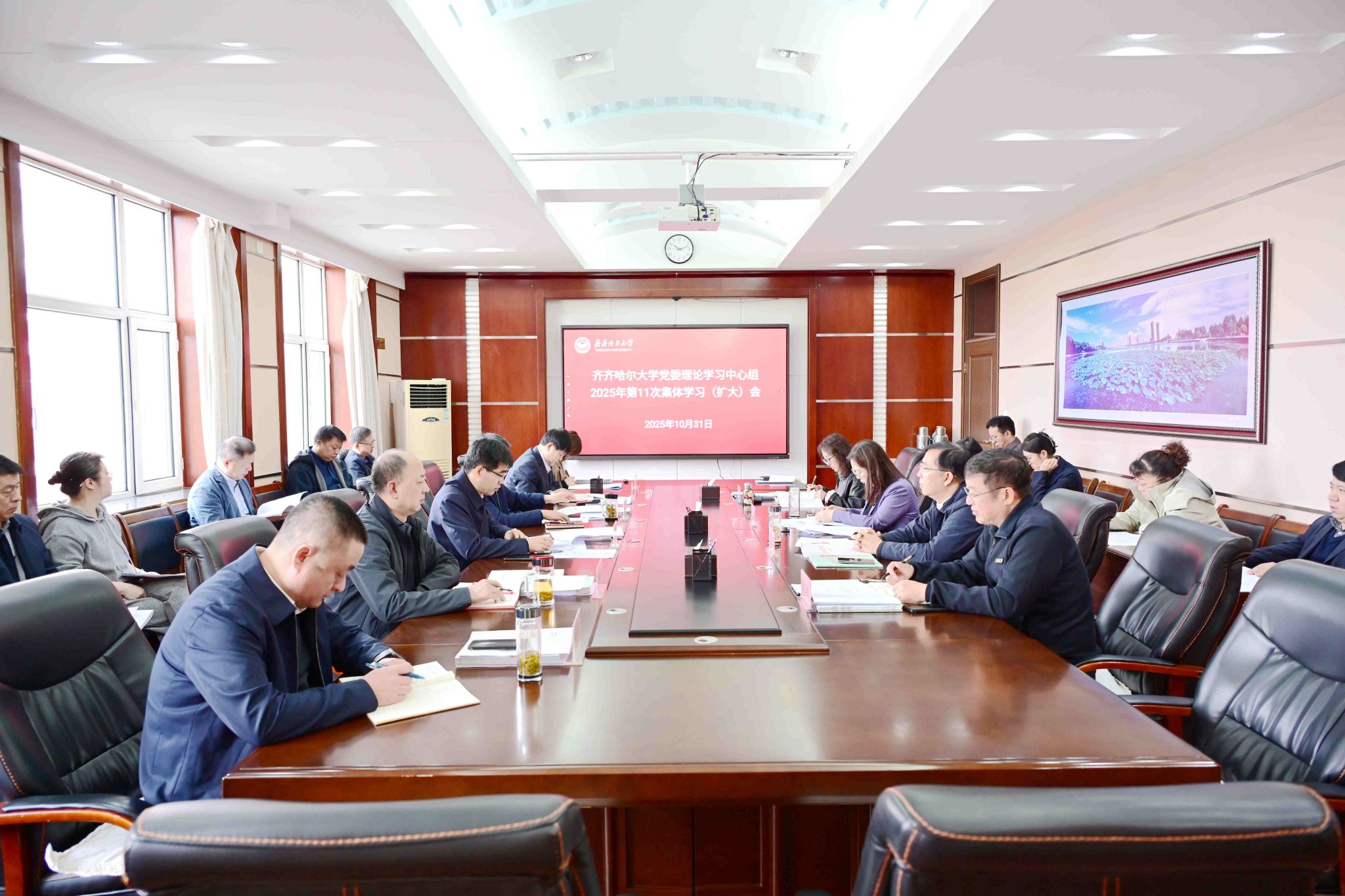 10月31日上午,學校黨委理論學習中心組在辦公樓504會議室召開2025年第11次集體學習(擴大)會,專題學習研討黨的二十屆四中全會精神。校黨委書記丁宏主持會議并講話。會上,與會同志集中學習了習近平總書記在黨的二十屆四中全會上所作的報告和重要講話精神、習近平總書記《關于<中共中央關于制定國民經濟和社會發(fā)展第十五個五年規(guī)劃的建議>的說明》《中共中央關于制定國民經濟和社會發(fā)展第十五個五年規(guī)劃的建議》。副校長、黨委...